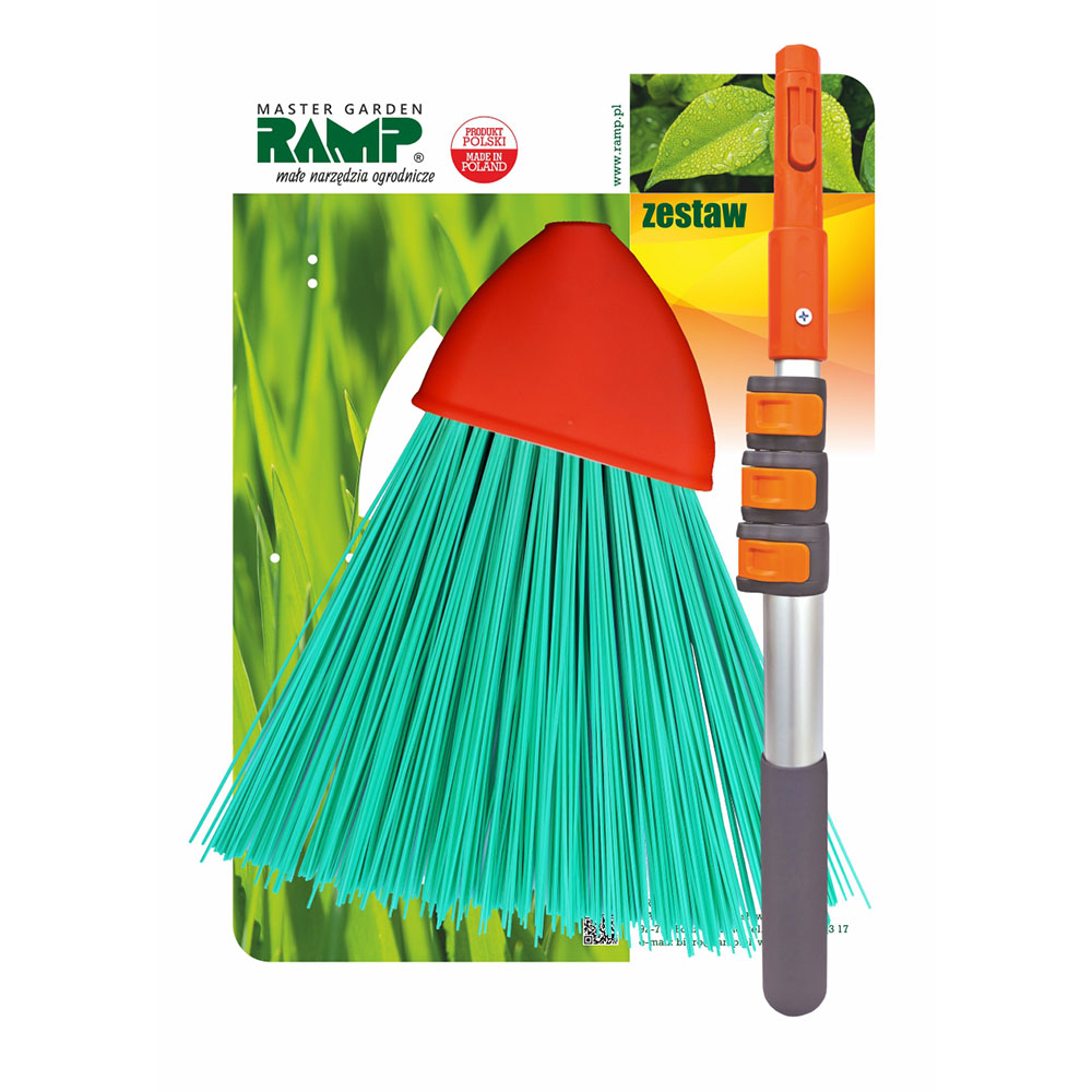 Profesjonalny zestaw do zamiatania od renomowanej polskiej marki RAMP to niezastąpione narzędzie w każdym ogrodzie, na tarasie, balkonie, podjeździe czy w garażu. W skład zestawu wchodzi miotła premium o wytrzymałym i elastycznym włosiu oraz drążek teleskopowy z regulacją długości od 50 do 120 cm.